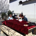 Az ebéd jó hangulatban fogyott, s miután nagyon szép idő volt, kiültünk az udvarra a megrakott tányérokkal.